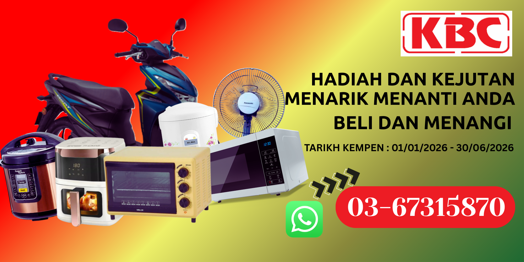 Hadiah Utama ” Honda Beat ” mesti dituntut di kilang KBC.