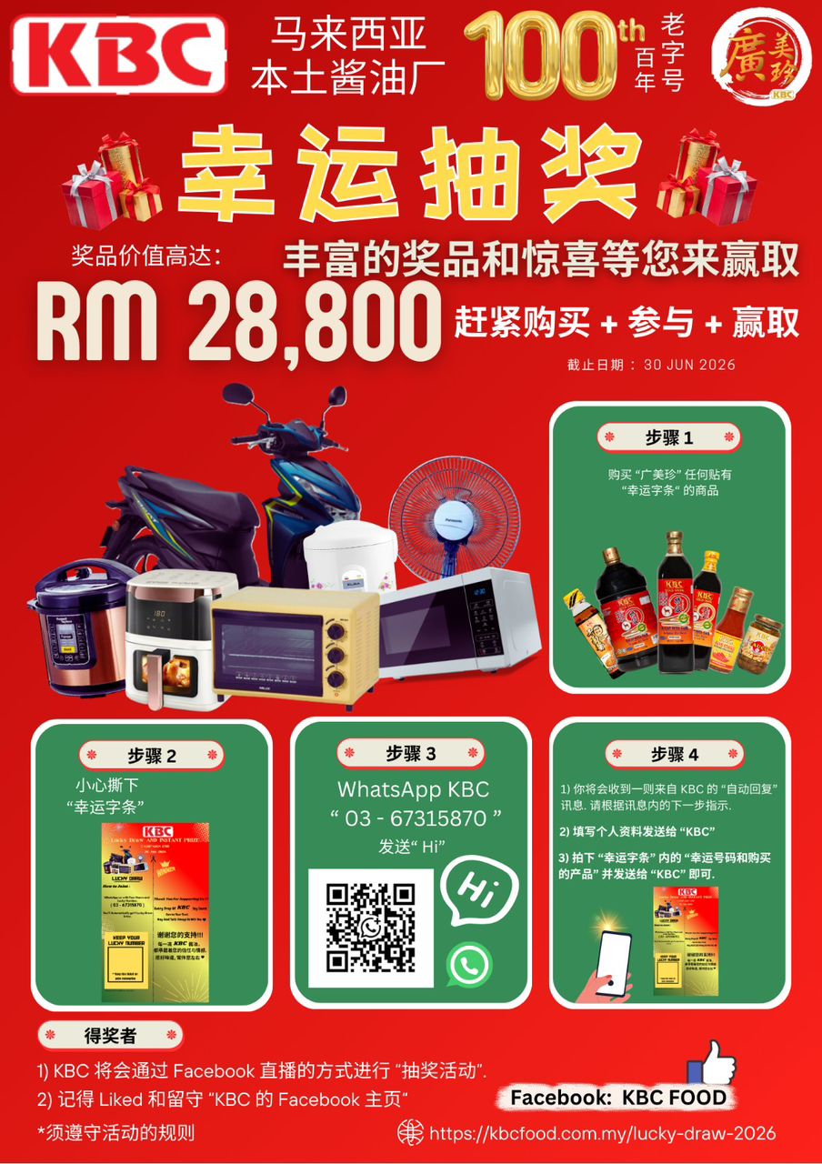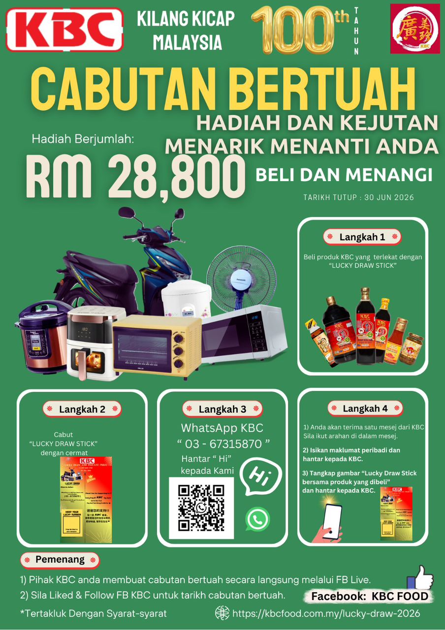 Pengumuman Pemenang akan dipaparkan di Facebook KBC Food [https://www.facebook.com/kbcsauce] .
